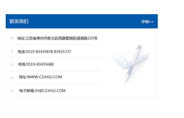 傳真:0519-83435688    郵編:213135    網址:WWW.czjhgj_com.yayafun.com    電子郵箱:JH@czjhgj_com.yayafun.com